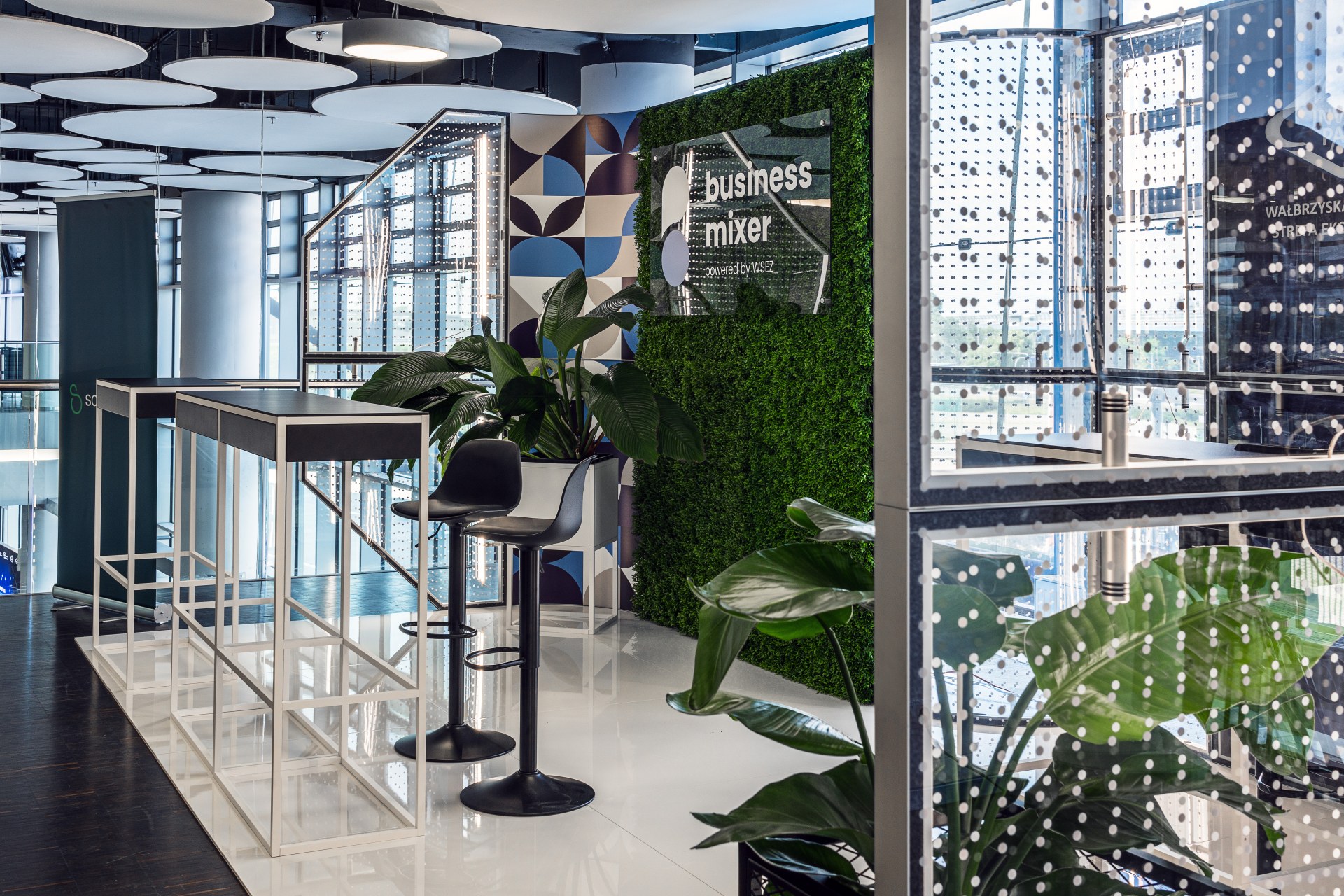W celu zwiększenia swojej widoczności oraz efektywnej komunikacji z mediami WSSE INVEST-PARK zleciła nam zaprojektowanie i realizację stoiska wystawienniczego pełniącego funkcję press roomu. Główną kolorystyką projektu były odcienie niebieskiego, które dla kontrastu przełamaliśmy białą podłogą z połyskiem oraz panelami strukturalnym imitującymi bukszpan. Uzupełniająco zastosowaliśmy wypełnienia transparentne z miejscowo szronionym patternem oraz panele ze wzorem pojawiającym się w oprawie graficznej wydarzenia. Całości dopełniły minimalistyczne meble z linii HELO FORM, ekran LCD oraz świetlówki.