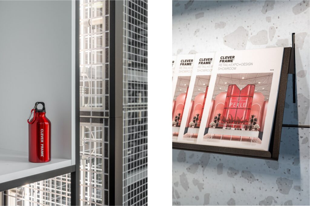 Dopiero praktyka pokazuje pełne możliwości systemu – to moment, w którym można zobaczyć, jak lekko pracują moduły, jak szybko da się zmienić układ zabudowy i jak dużą swobodę daje cały system. Często słyszymy, że pięć minut w showroomie to prawdziwy game changer, który błyskawicznie pokazuje pełen potencjał rozwiązań Clever Frame. Oprócz podstawowych elementów konstrukcyjnych w naszych showroomach prezentujemy także logotypy przestrzenne, systemy oświetleniowe, akcesoria czy rozwiązania ekspozycyjne z linii HELO FORM. To pełne spektrum możliwości w jednym miejscu.